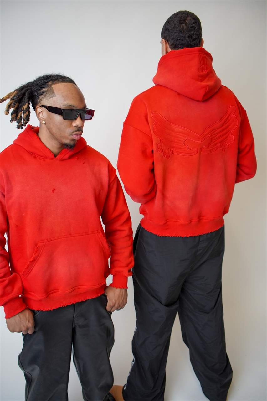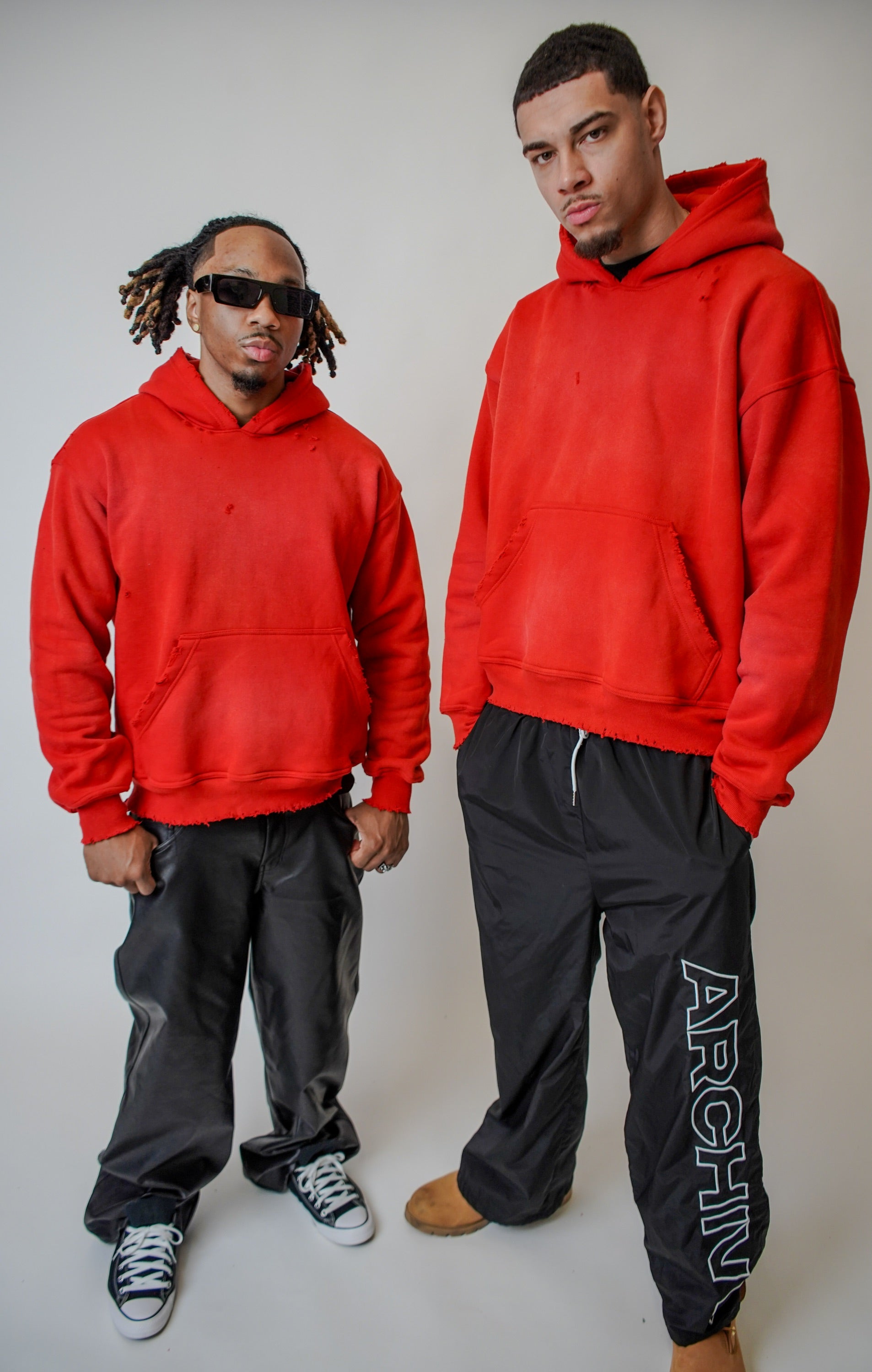 Back in Black. New in Red. The distressed hoodie restock you’ve been waiting for